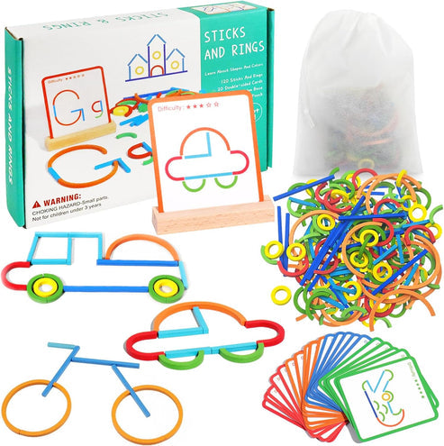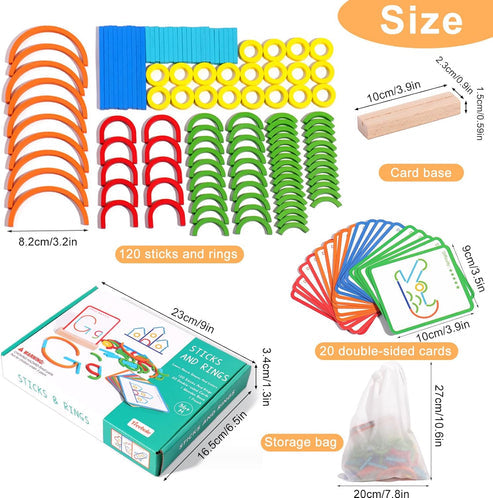 Wooden Sticks and Rings Pattern Matching Puzzle Cards - D41